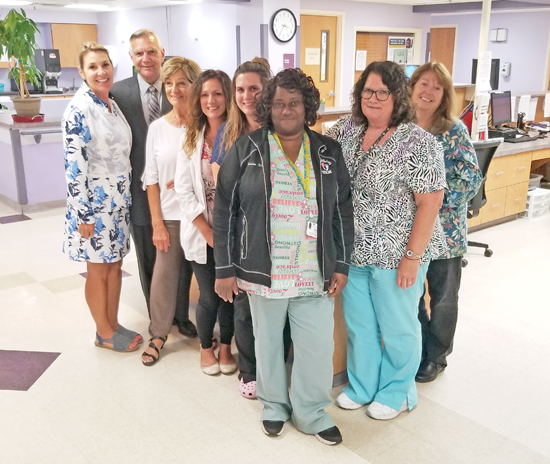 From left, Play Fore Pink committee co-chair Maryjean Thompson, Niagara Falls Memorial Medical Center President and CEO Joseph A. Ruffolo and Play Fore Pink co-chair Adeline Candella join members of Memorial's women's services team for the presentation of proceeds from the 2019 Play Fore Pink golf tournament, held Aug. 7 at the Niagara Falls Country Club.