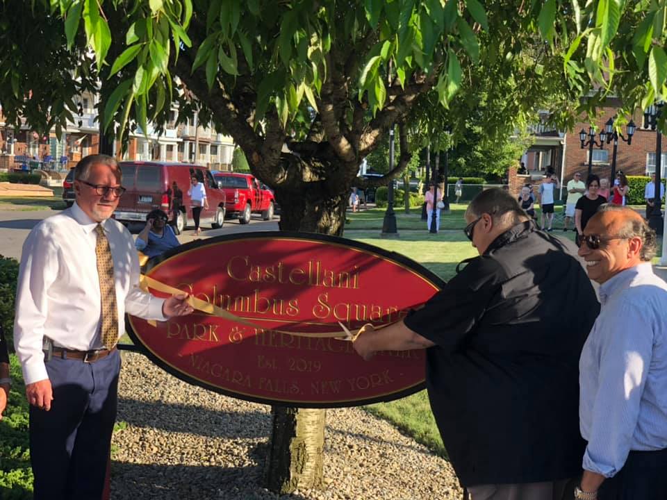 Chris Castellani of Supermarket Liquors pledged $5,000 a year for park maintenance for the new Castellani Columbus Square Park-Heritage Walk at a recent dedication in Niagara Falls.