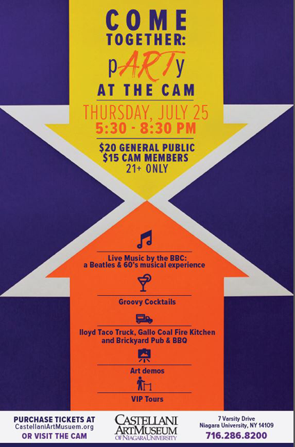 The Castellani Art Museum of Niagara University is hosting its inaugural summer event, "Come Together: pARTy at the CAM," on from 5:30-8:30 p.m. Thursday, July 25. This "friend-raiser" "encourages first-time and longstanding visitors to enjoy an exciting summer evening on the beautiful campus of Niagara University."