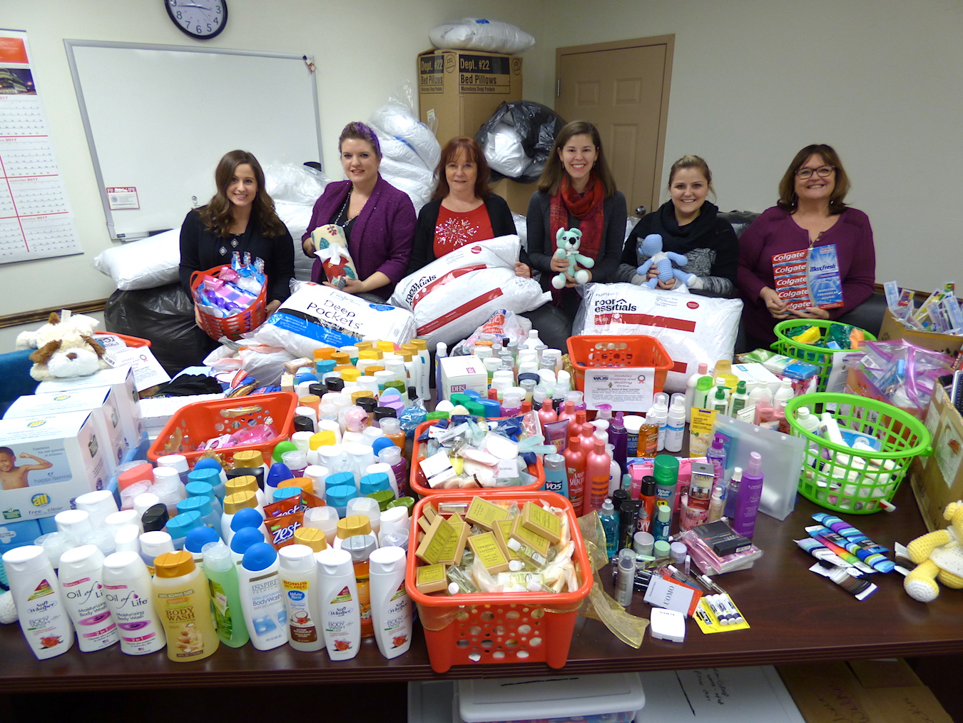 Mountains of pillows and a roomful of toiletries greeted Passage House Domestic Violence Services staff when they arrived at the City of Niagara Falls Department of Public Works on Monday afternoon. For the past six weeks, United Steelworkers Local No. 9434 and Women of Steel have collected shampoo, toothpaste, deodorant, body wash, combs, pillows and sheets for the Family & Children's Service of Niagara program. Most items were purchased and donated, while others were handmade and personally delivered.