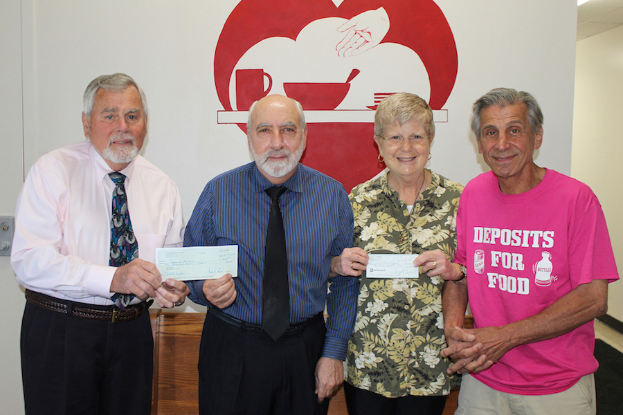 Deposits for Food presented $1,000 donations each to two Niagara Falls food pantries on Tuesday: Community Missions, and Heart, Love & Soul. Pictured, from left, are Fran Giles, Modern Corporation; Joseph Sbarbati, Community Missions; Sister Beth Brosmer, Heart, Love and Soul; and Angelo Sarkees, Deposits for Food.