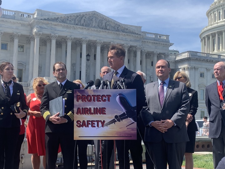 Earlier this week, Congress members Brian Higgins (D-NY-26) and Nick Langworthy (R-NY-23), together with the families of Flight 3407 and the Air Line Pilots Association (ALPA), stood together in front of the U.S. Capitol following a hearing on Federal Aviation Administration (FAA) reauthorization to stress the need for Congress to protect flight safety standards, including the 1,500-hour rule for pilot training.