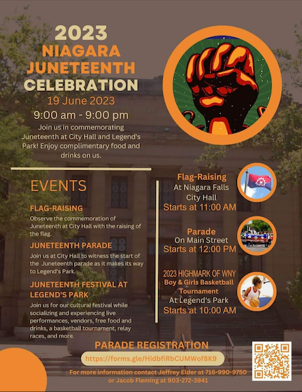 Niagara County Legislator Jeffrey Elder today announced the schedule of events for celebrating Juneteenth in the City of Niagara Falls on Monday, June 19. Elder is co-chairing the Juneteenth organizing committee.