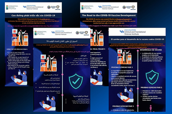 In an effort to help explain how the COVID-19 vaccines were developed and how a vaccine works, the University at Buffalo Clinical and Translational Science Institute (CTSI), the International Institute of Buffalo and the Erie County Department of Health collaborated on the creation of a downloadable infographic. The infographic is available in 15 languages, thanks to translation by the International Institute.