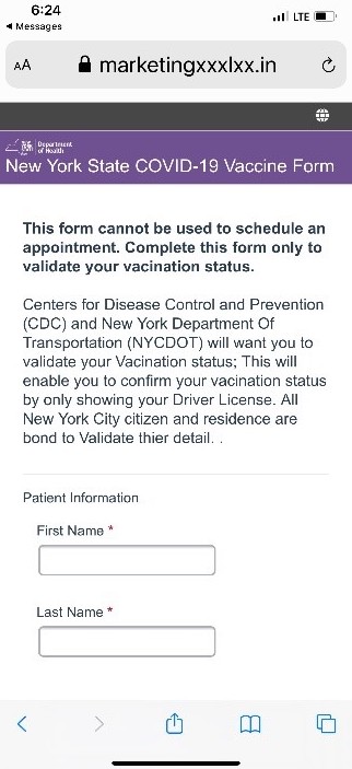 The New York State Division of Consumer Protection and the New York State Department of Health warn New Yorkers of a text message phishing scheme targeting those attempting to validate vaccine status to try to steal personal information.