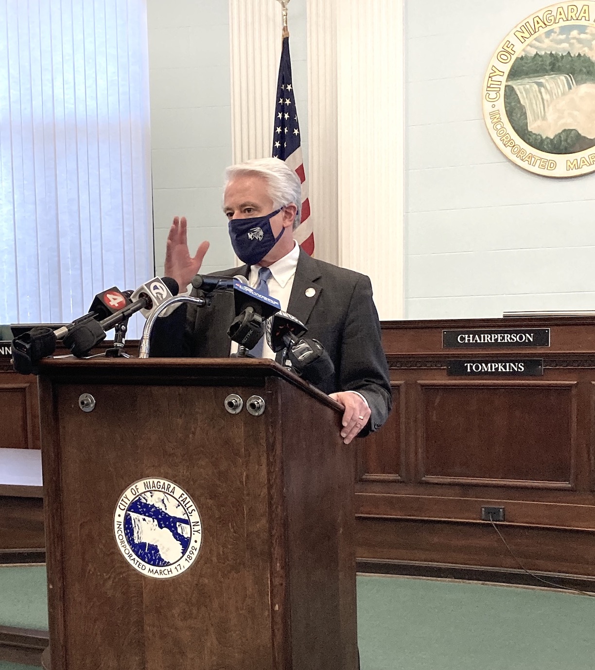 On Friday morning, Mayor Robert Restaino announces the disbursement of CARES Act grant funds to local community groups working to fight against the wide-ranging effects of COVID-19 within the City of Niagara Falls community.