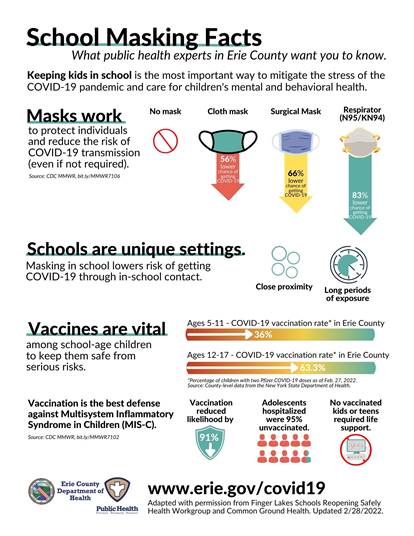 Effective Monday, Feb. 28, Niagara County Community College is removing the mandatory masking requirement on campus for those fully compliant with the coronavirus vaccine mandate as defined by the Centers for Disease Control, New York state, the State University of New York and the Niagara County Department of Health. While masks will no longer be required, it is encouraged that individuals wear them when in close proximity to others.