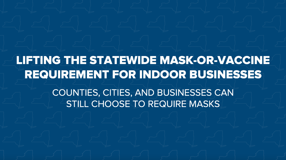 Gov. Kathy Hochul on Wednesday announced her order requiring masks to be worn indoors throughout New York state will end on Thursday. Her "mask mandate" was implemented Dec. 10 in an effort to slow the spread of coronavirus - particularly the delta and omicron variants. Hochul said infection numbers and related hospitalizations are now back to a pre-"winter surge" level, allowing a lessening of the restrictions.