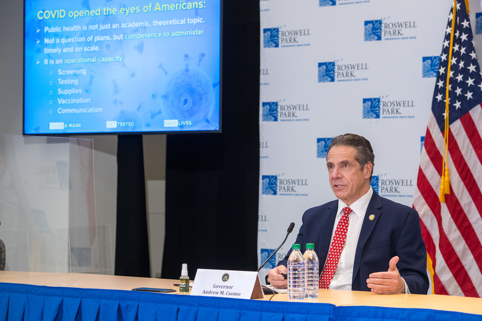 Speaking to the media Monday at Roswell Park Comprehensive Cancer Center in Buffalo, Gov. Andrew Cuomo suggested he will lessen restrictions placed on Western New York - and Erie County, in particular - designed to lessen the spread of the coronavirus.