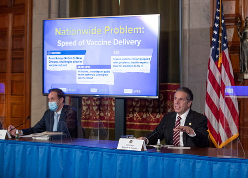 Gov. Andrew Cuomo on Tuesday updated New Yorkers on the state's vaccination program. As of noon, New York's health care distribution sites have received 1,554,450 first doses and already administered 91% (1,414,241) first-dose vaccinations and 76% of first and second doses. Delivery of the week 8 allocation from the federal government begins mid-week.