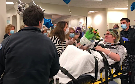 More than 100 excited members of the Niagara Falls Memorial Medical Center family turned out Wednesday to bid an emotional farewell to a courageous patient who overcame COVID-19 during a lengthy hospital stay that included several weeks on a respirator.