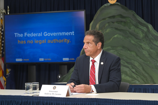 Gov. Andrew Cuomo, on a conference call on Thursday, announced new regulations for bars and restaurants to ensure they are complying with state social distancing and face covering orders.
