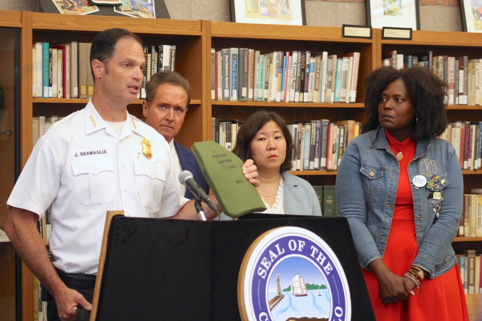 During a visit to Buffalo, Congresswoman Grace Meng, along with Congressman Brian Higgins, advocated for approval of the Aaron Salter, Jr. Responsible Body Armor Possession Act (H.R. 3247). Meng and Higgins, lead sponsors of the bill, were joined by City of Buffalo Mayor Brown, Buffalo Police Commissioner Joseph Gramaglia, and families of the victims of the Tops Supermarket mass shooting.