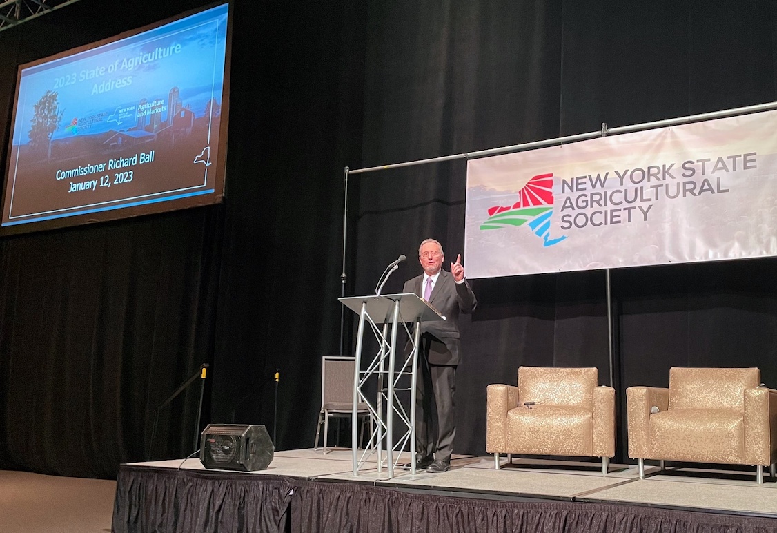 New York State Agriculture Commissioner Richard A. Ball, on Jan. 12, delivered the state of agriculture address at the 191st New York State Agricultural Society Annual Forum. The event, which is traditionally the oldest and largest meeting of its kind in the state, took place at the OnCenter in Syracuse.