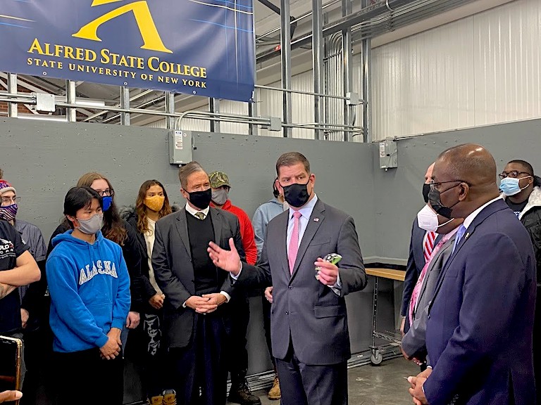 U.S. Labor Secretary Marty Walsh joined Congressman Brian Higgins for a tour of the Northland Workforce Training Center during a visit to Western New York on Monday. Federal leaders met with students, teachers and administrators to discuss opportunities to prepare workers for the quality jobs of tomorrow.