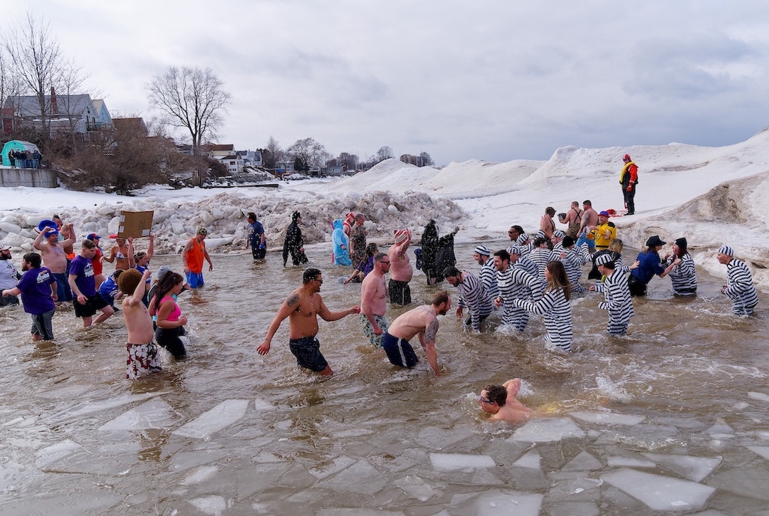 Cold temperatures didn't keep folks from coming to Olcott on Sunday for the 56th annual Polar Bear Swim For Sight to benefit the Olcott Lions Club. This year's top group - dressed as inmates - raised $6,675 for the Lions Club.