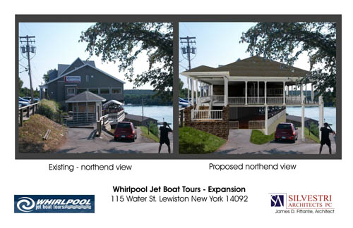 The Village of Lewiston Planning Board will have two Whirlpool Jet Boat Tours expansion designs to consider when it meets Monday at 6:30 p.m. in the Red Brick Municipal Building. WJBT President John Kinney, upon consultation with Silvestri Architects, commissioned a second plan that shows 10 feet shaved off the north side of his proposed development.