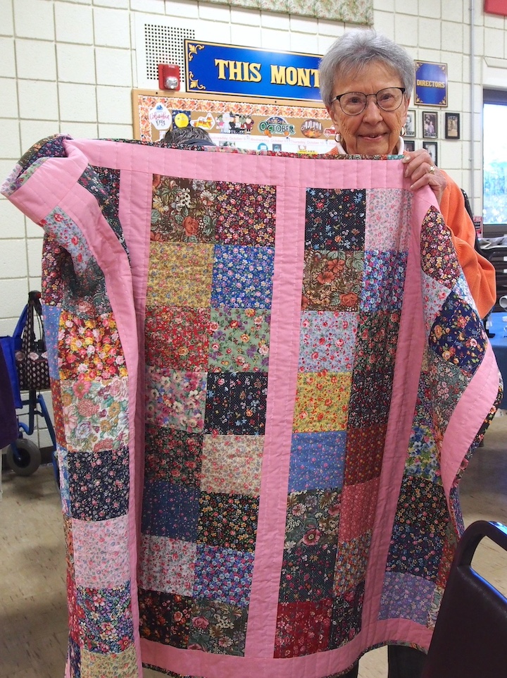 The display at Pat Shaw's table included a variety of wreaths, as well as a quilt that was being raffled off.