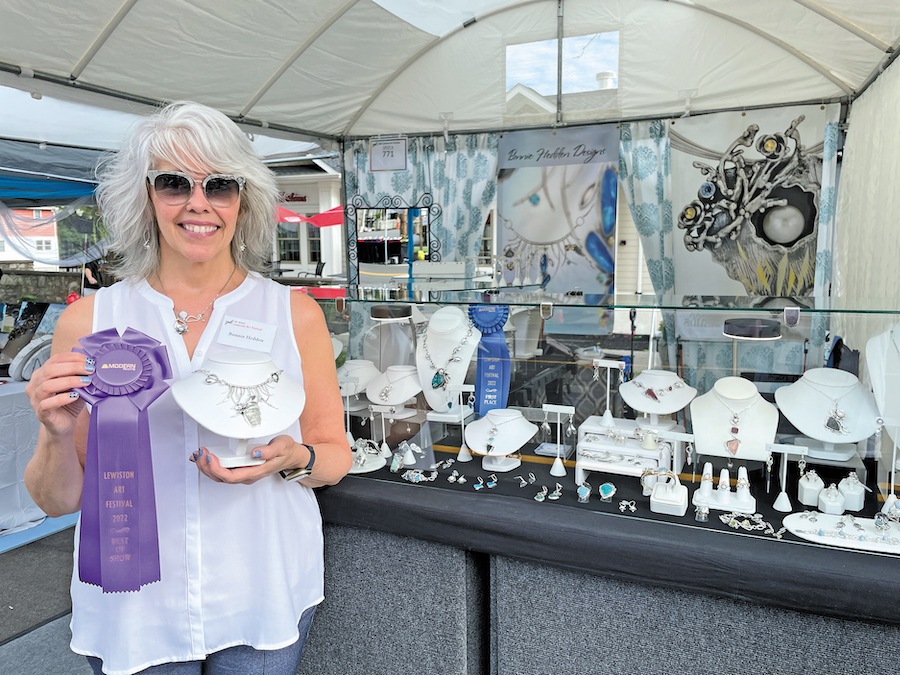 Renee Arno made a grand debut at the 57th annual Lewiston Art Festival, with her stained-glass lamp earning Best of Show on Saturday.
