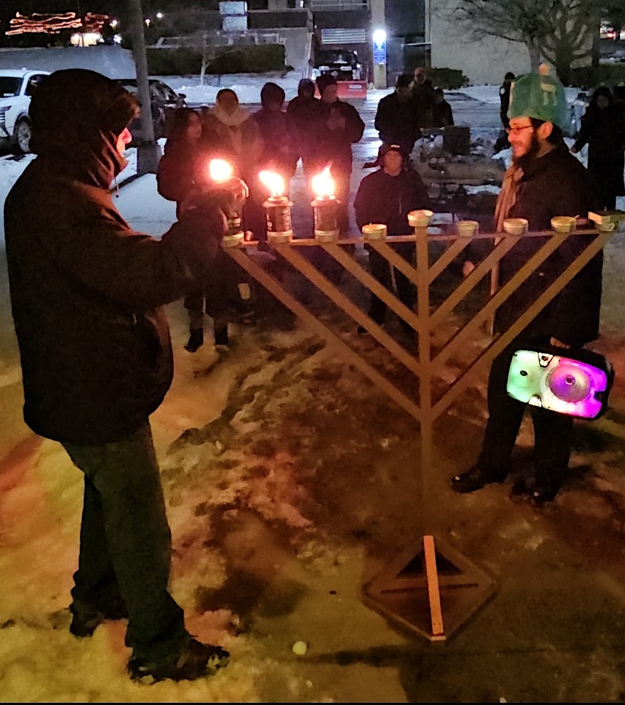 The world, Rabbi Mendel Gurary said, is full of darkness. Speaking at the gazebo in the Grand Island Town Commons on Dec. 16 as part of a local Chanukah celebration, Gurary, who organized the event with Rabbi Yosef Chartonow of Chabad of Buffalo, said, "The message of Chanukah is the message of light. There's a lot of darkness in the world, especially this year. We know what happened in Sydney."