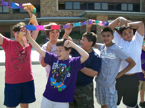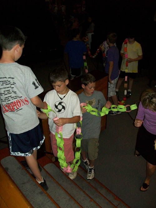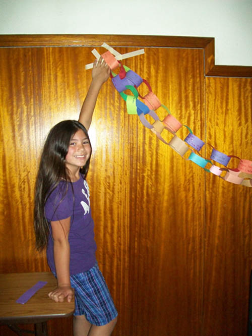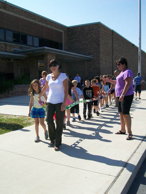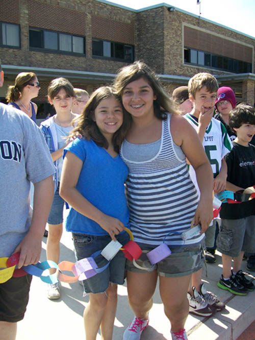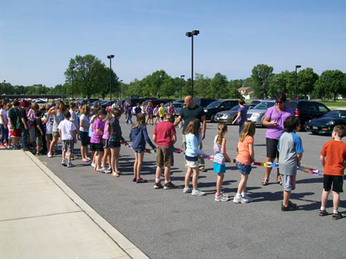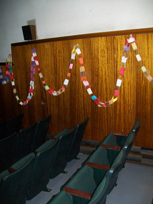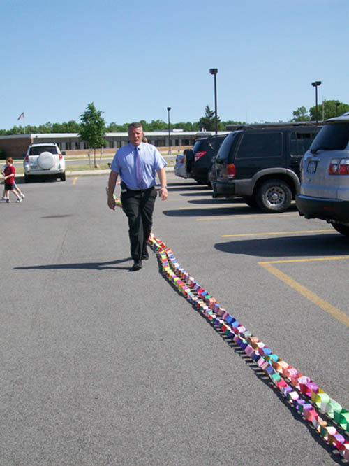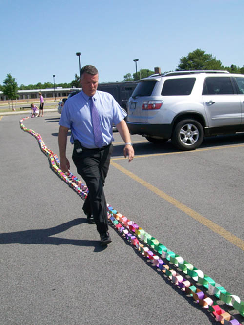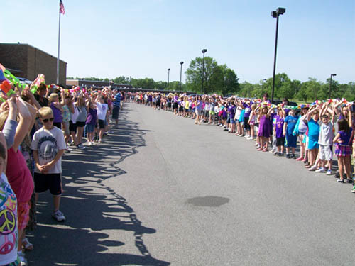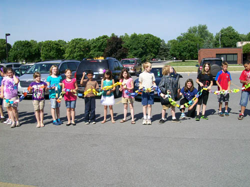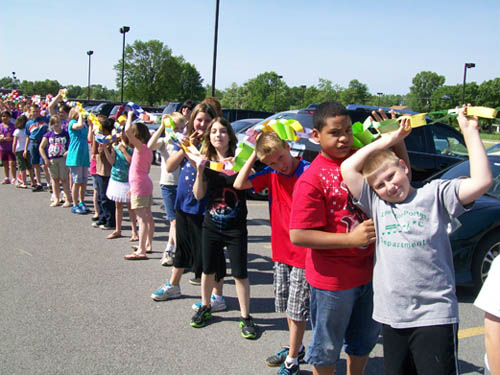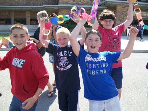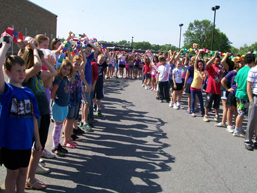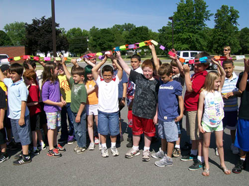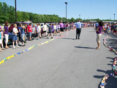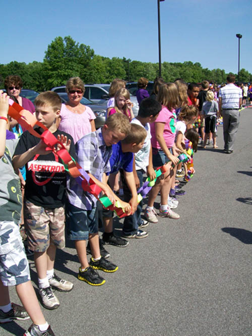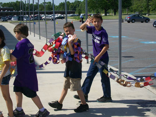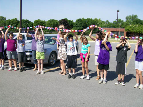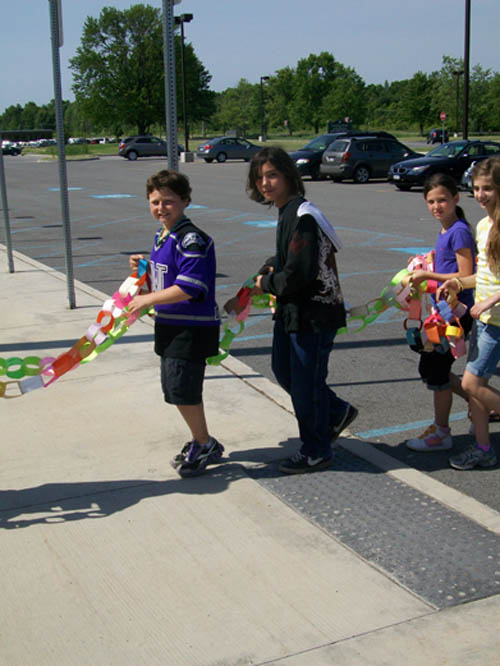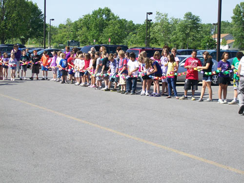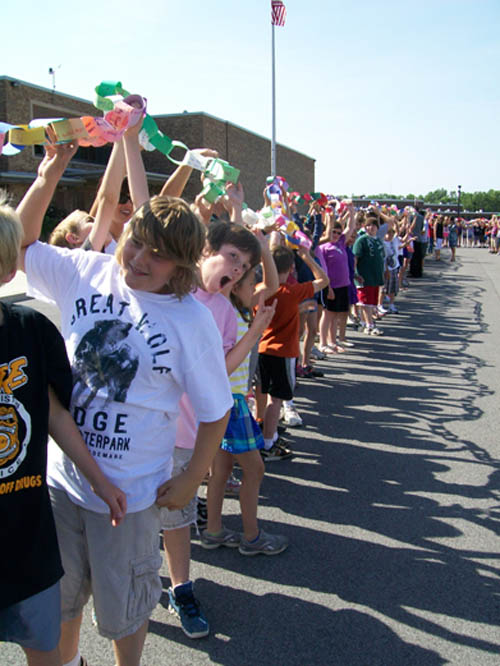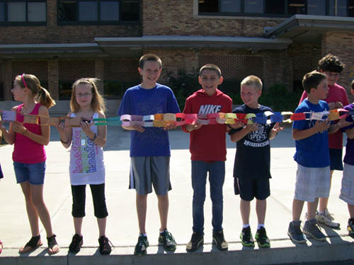 For two-and-a-half months, more than 470 children in grades three to five made chain links - one for each act of compassion or decency shared with another. They were working in conjunction with "Rachel's Challenge," an organization formed in memory of Rachel Scott. She was the first person killed at Columbine High School on April 20, 1999. The gunmen in that incident cited bullying as a reason for their actions.