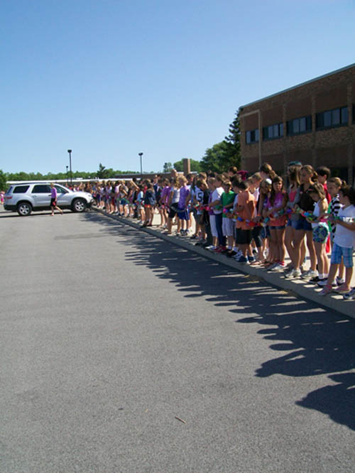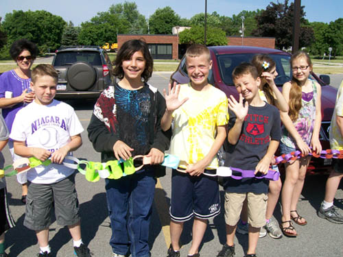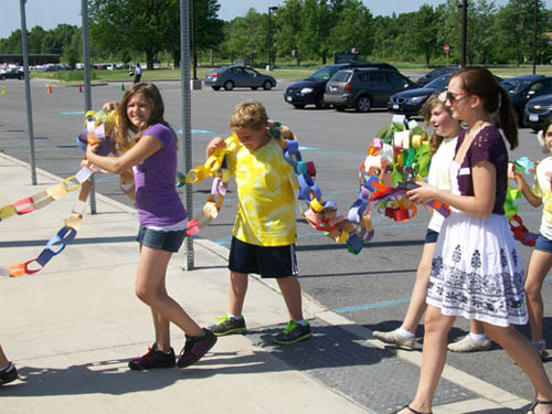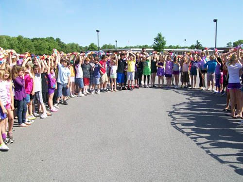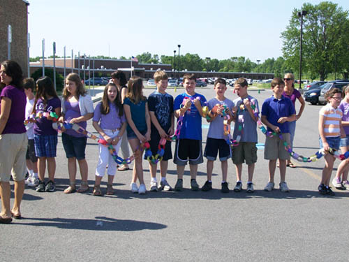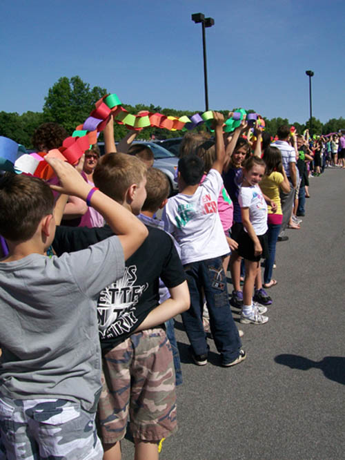 What started with a motivational speech at the end of March ended Monday with a giant paper chain wrapped around the Lewiston-Porter Intermediate Education Center parking lot. Students assembled a 534-foot-long chain and shouted, "We are kind!"