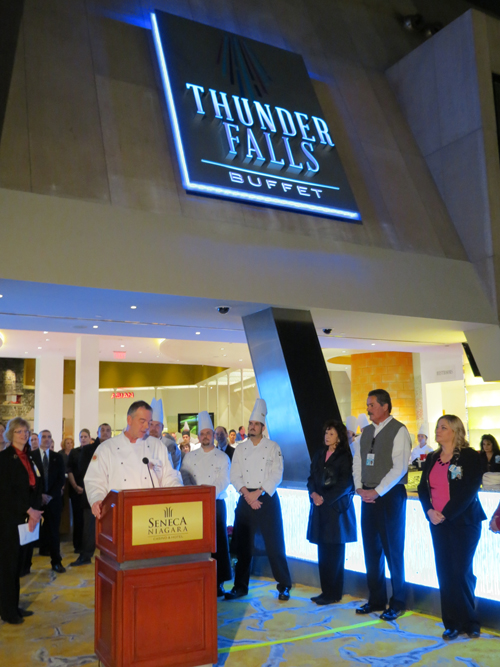 "Today, a restaurant already regarded as the region's best buffet has become even better," said Barry E. Snyder Sr., president of the Seneca Nation of Indians, at an unveiling event Thursday afternoon. "Our award-winning culinary team has redefined what it means to eat at a buffet, and locals and tourists alike will come to know Thunder Falls Buffet as a must-visit dining location when visiting the Niagara Falls region. More than a million people dine at the buffet every year, and we fully anticipate that number to increase."