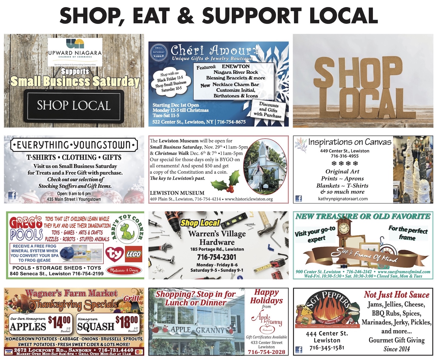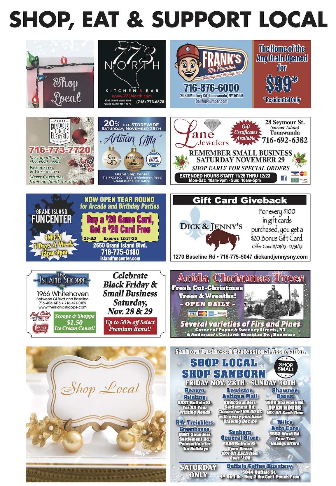 Local businesses across Lewiston, Youngstown, Sanborn, and the surrounding region will offer specials and giveaways, including: